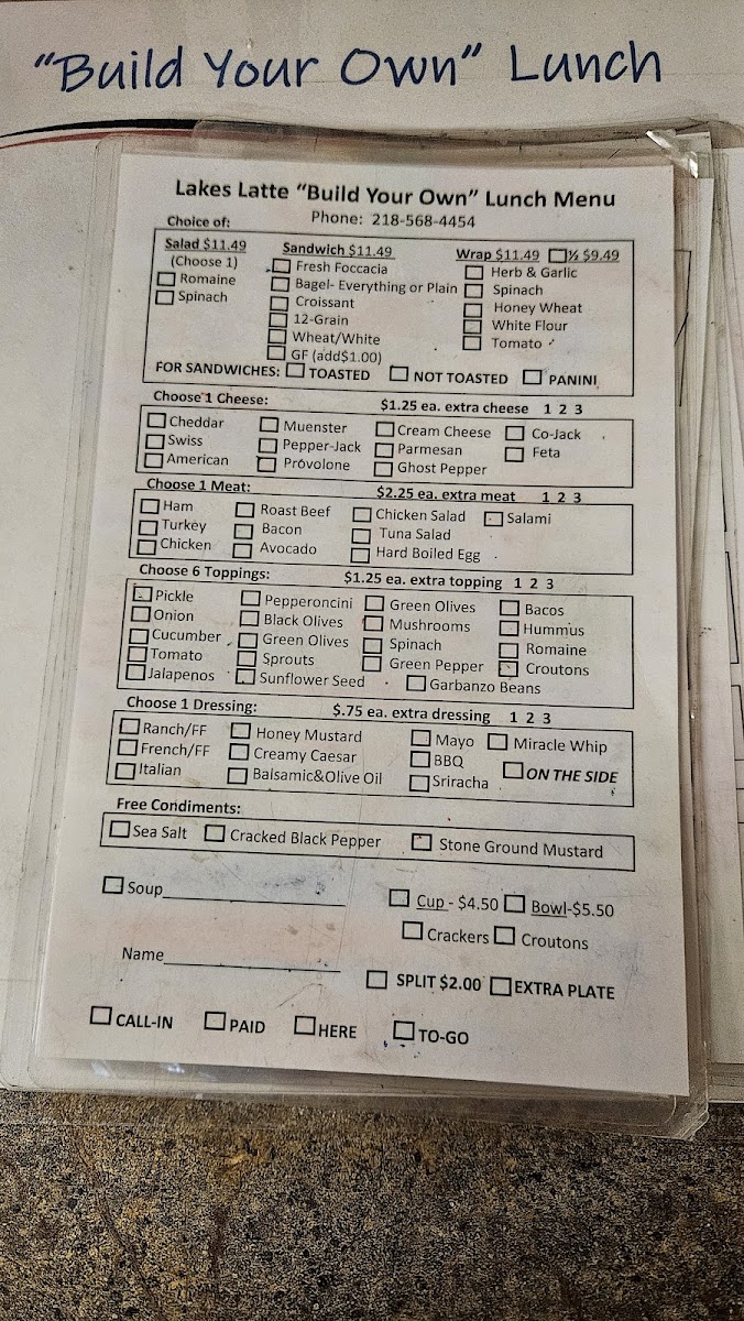 Welcome to Lakes Latte, a vibrant coffee shop nestled in the heart of Pequot Lakes, MN. This charming establishment, located at 31012 Government Dr, is more than just a place to grab your morning brew; it's a hub for cozy gatherings, delicious food, and delightful discoveries. With a menu featuring customizable options, patrons can craft their perfect dish by selecting from an array of toppings, cheeses, and meats, ensuring every palate is catered to.